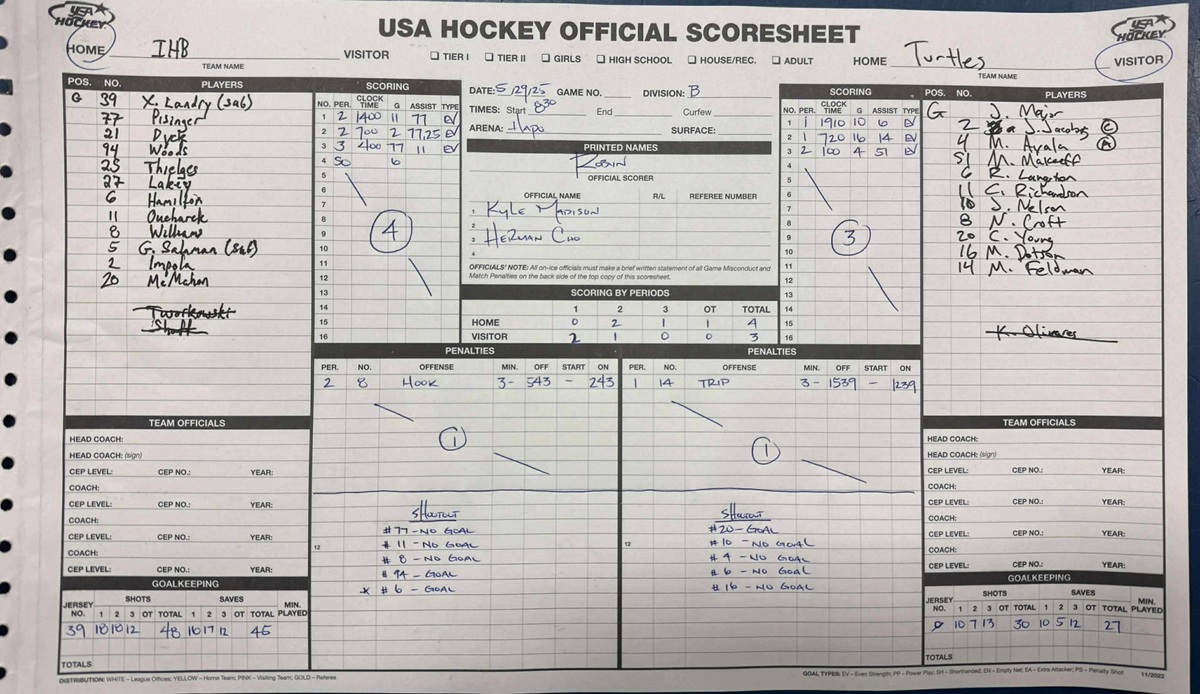 Semifinal 2 2025-12-11 09:00 PM Turtles Iron Horse Brewery Hapo Ice Pavillion Robyn Sanders 6 - 1