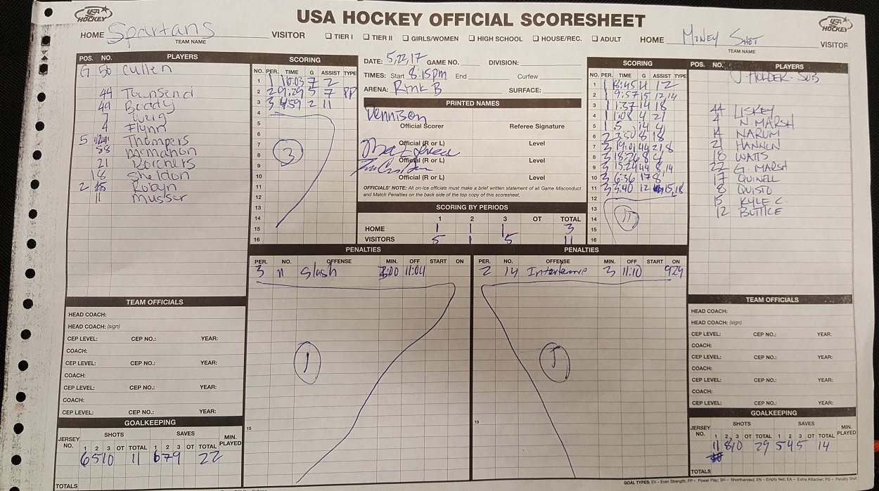 2017-05-29 08:15 PM Spartans Kimos Tactical Girth Toyota Arena Rebels 7 - 8 SO