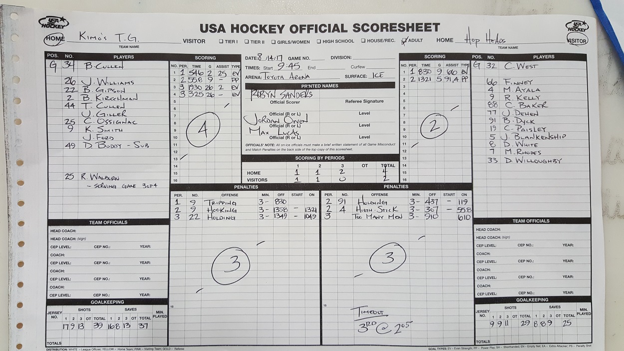 2017-08-28 09:45 PM Hop Heads Money Shot Toyota Arena Kimos Tactical Girth 2 - 3 OT