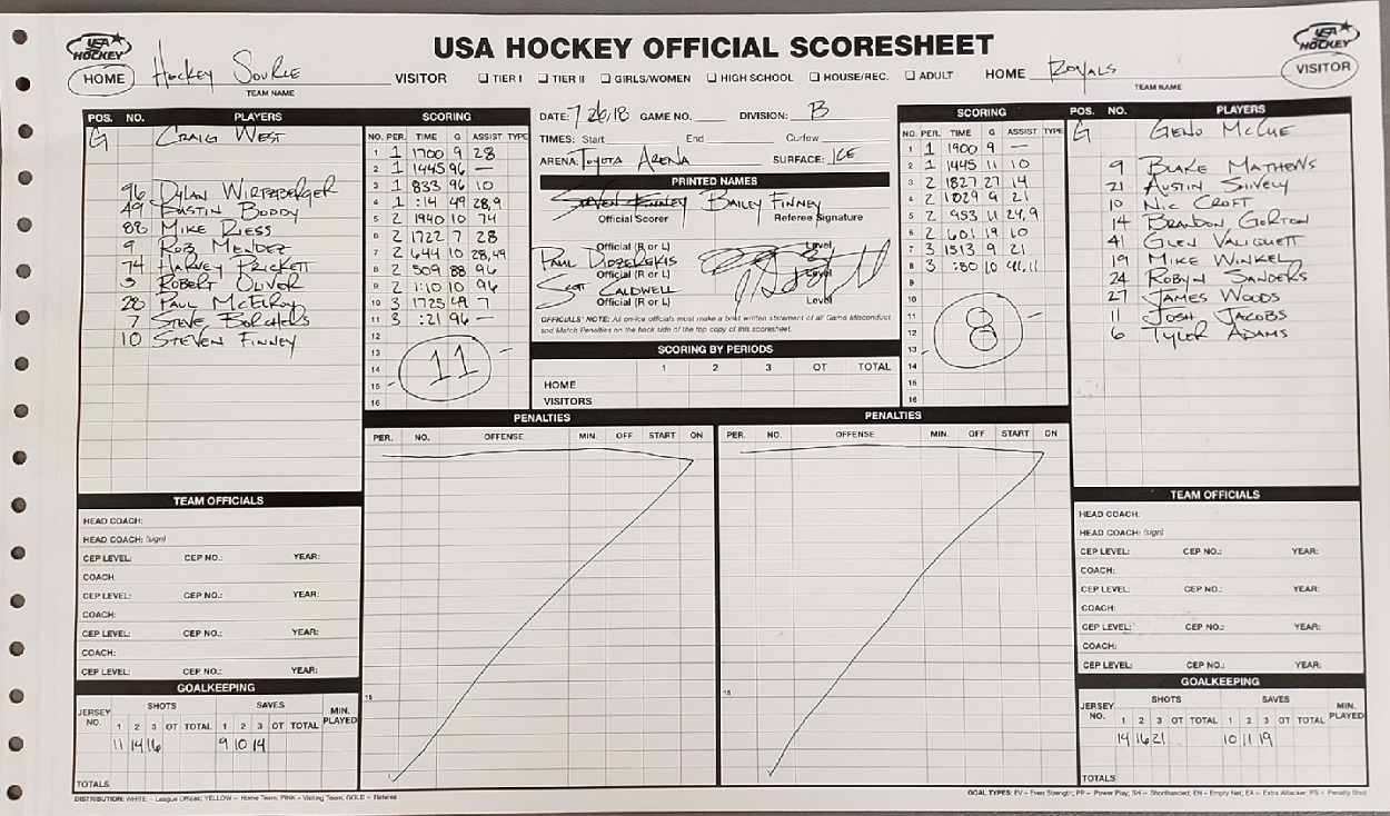 2018-06-28 09:45 PM Hockey Source HC Royals Toyota Arena Steve Finney 7 - 5
