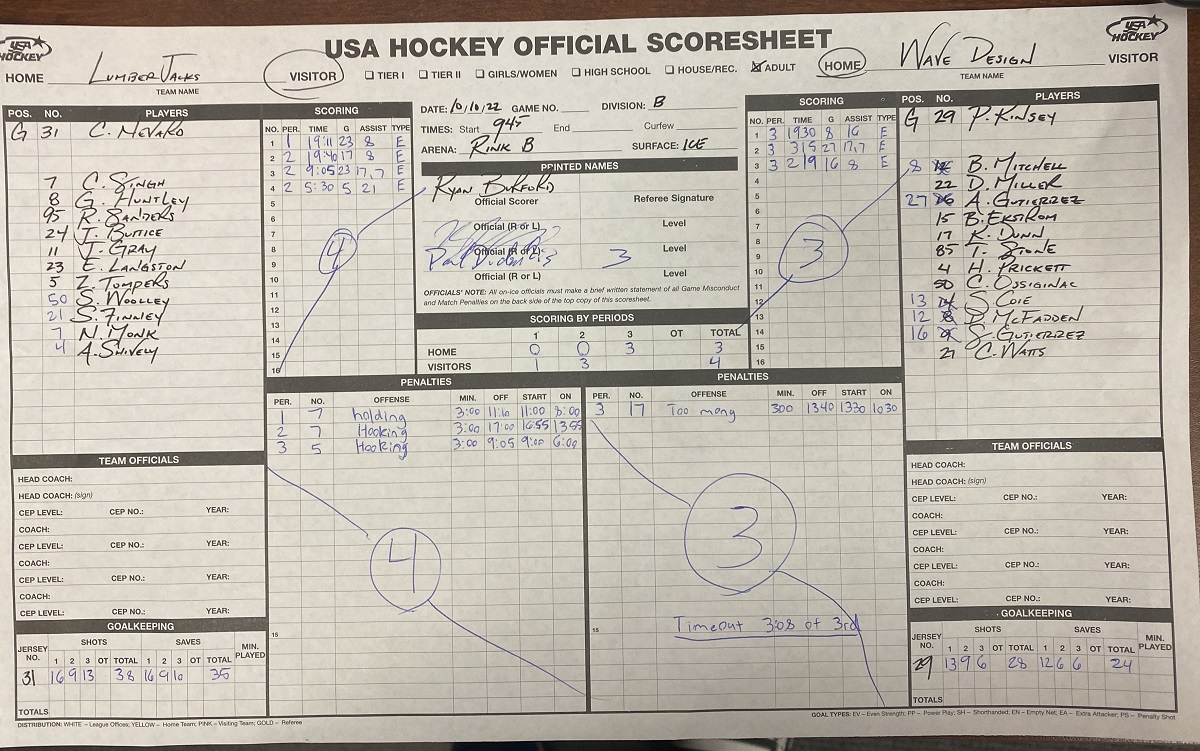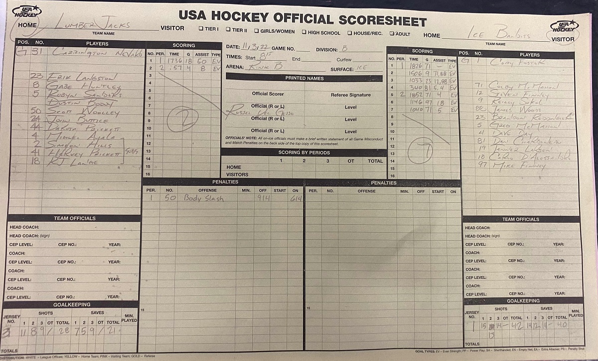 Game is Sunday!Lumberjacks TimeLords Toyota Arena Not Assigned Yet 7 - 4