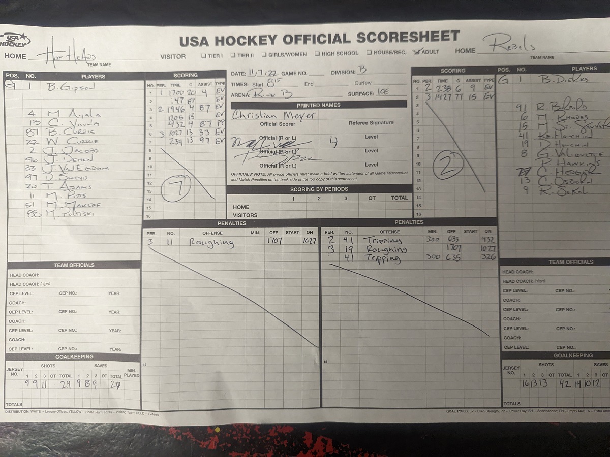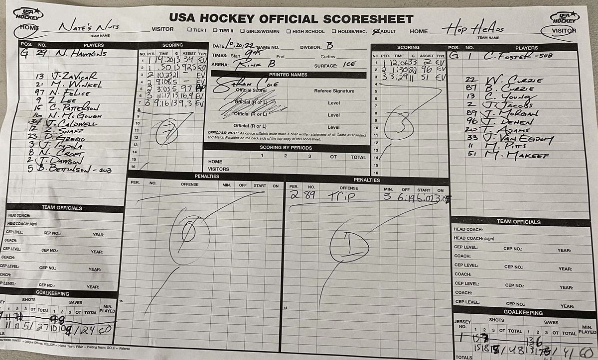 Champs: Ice Bandits9 1 0 0 18 10 66 34 Pawned Stars 9 0 0 0 18 9 76 49 Hop Heads 6 3 0 0 12 9 65 45 Nate's Nuts 5 4 0 0 10 9 58 46 Iron Horse Brewery 5 4 0 0 10 9 64 55 TNA 4 5 0 0 8 9 50 50 TimeLords 3 6 1 0 7 10 38 51 Lumberjacks 3 6 0 0 6 9 39 59 Wave Design 2 7 0 0 4 9 42 55 Rebels 0 9 0 0 0 9 33 87 Date Home Team Away Team Location Scoring/Clock Results 2022-09-19 08:15 PM Rebels Nate's Nuts Toyota Arena Not Assigned Yet 3 - 11