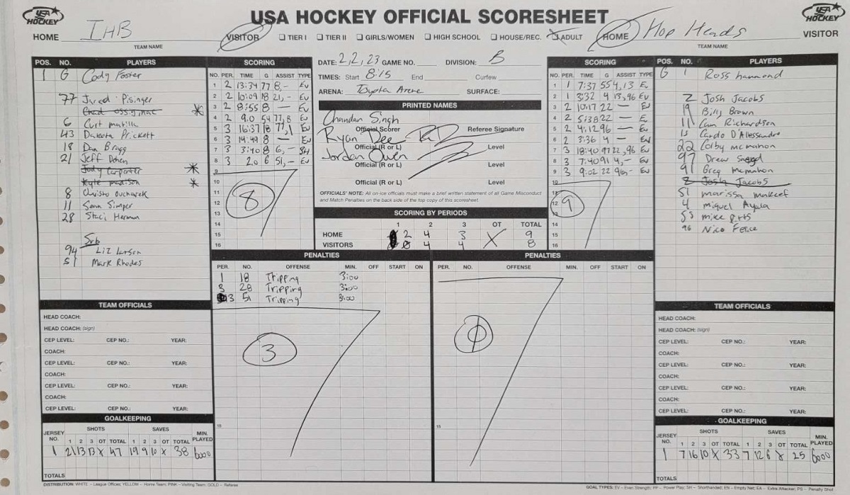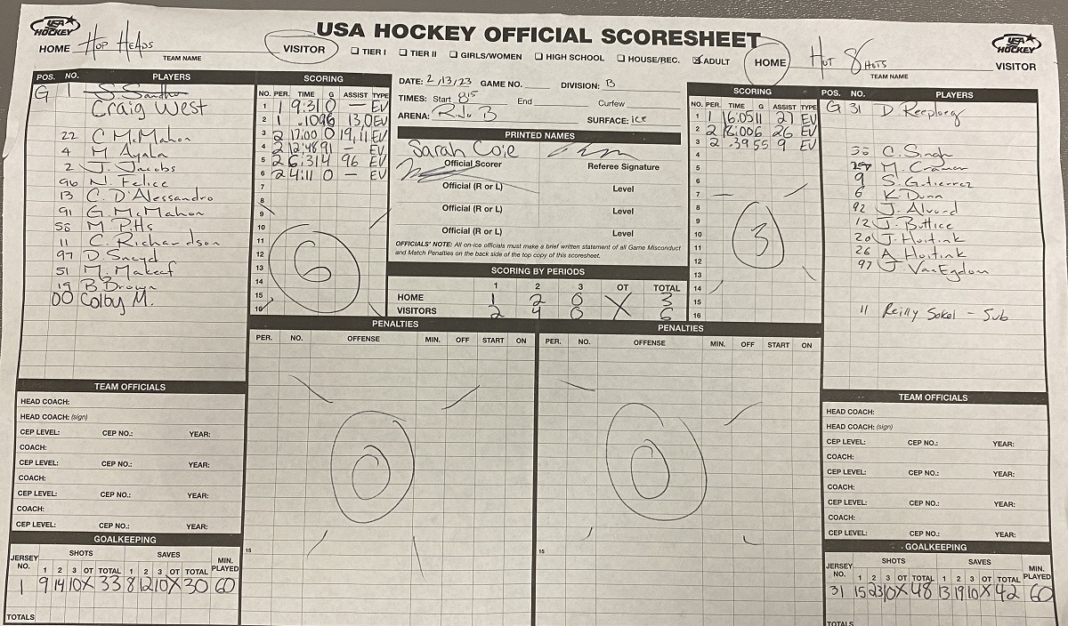 2023-02-13 08:15 PM Hop Heads Hotshots Toyota Arena Sarah Coie 6 - 3