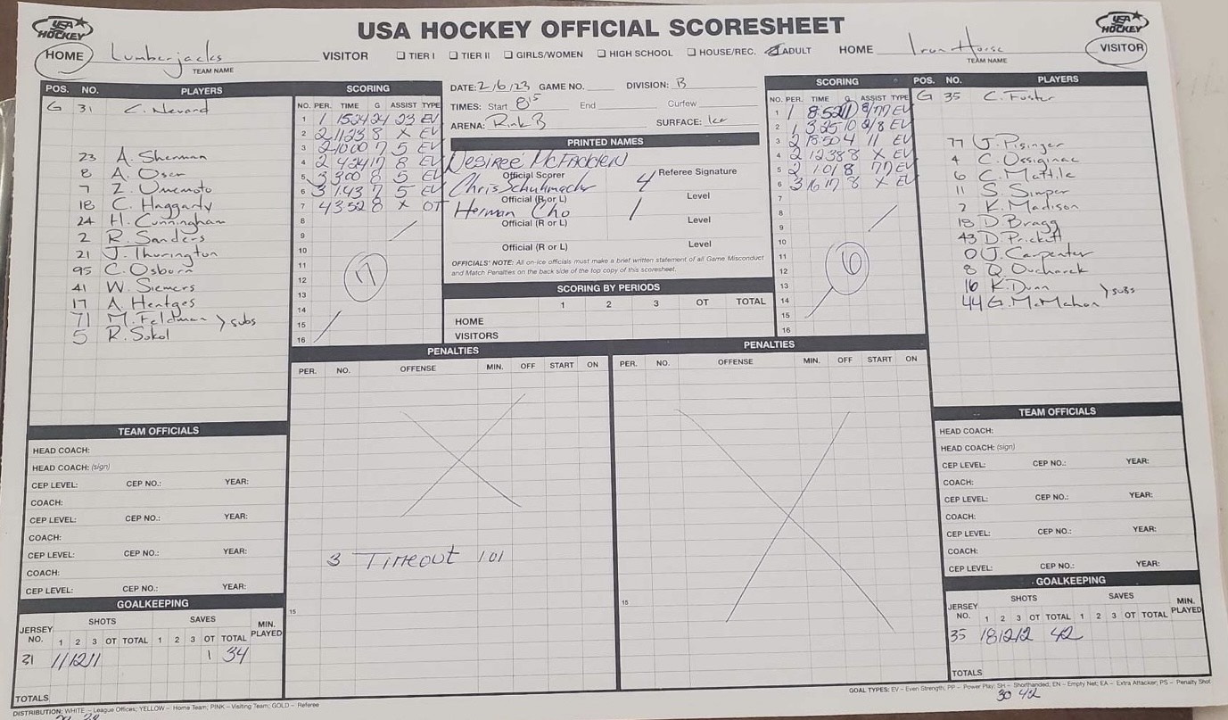 Game is Sunday!Lumberjacks Nate's Nuts Toyota Arena Cathie Caron 7 - 8 OT