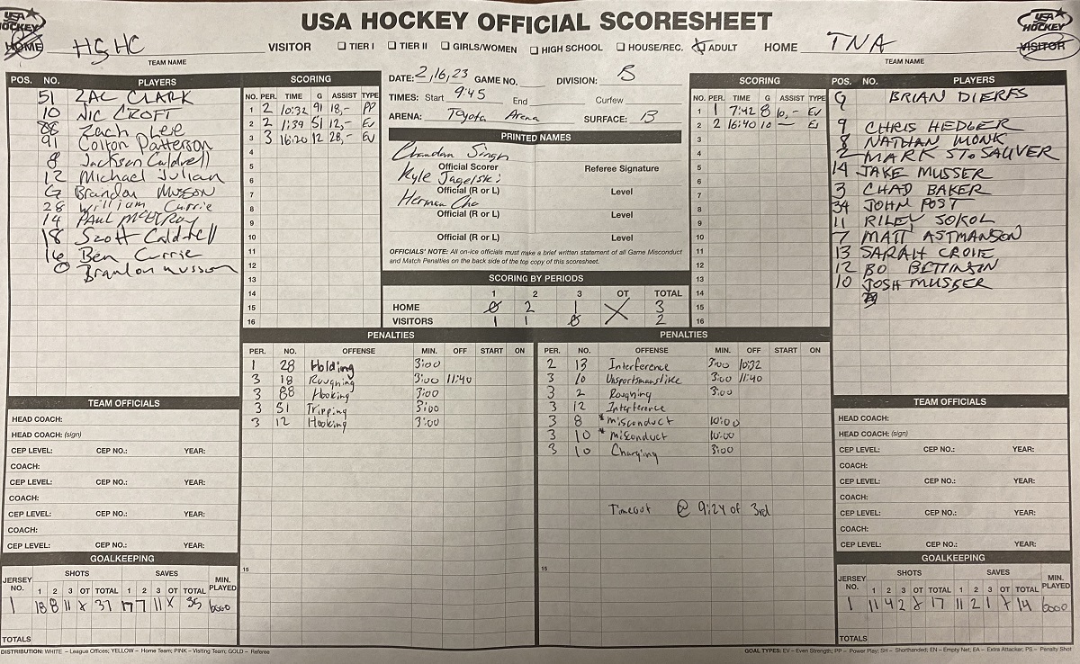2023-03-02 08:15 PM Hockey Source HC Nate's Nuts Toyota Arena Sarah Coie 6 - 5 SO