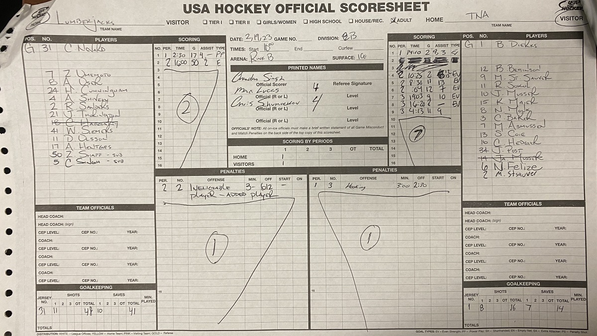 2023-03-13 09:45 PM Lumberjacks Hop Heads Toyota Arena Sarah Coie 4 - 8