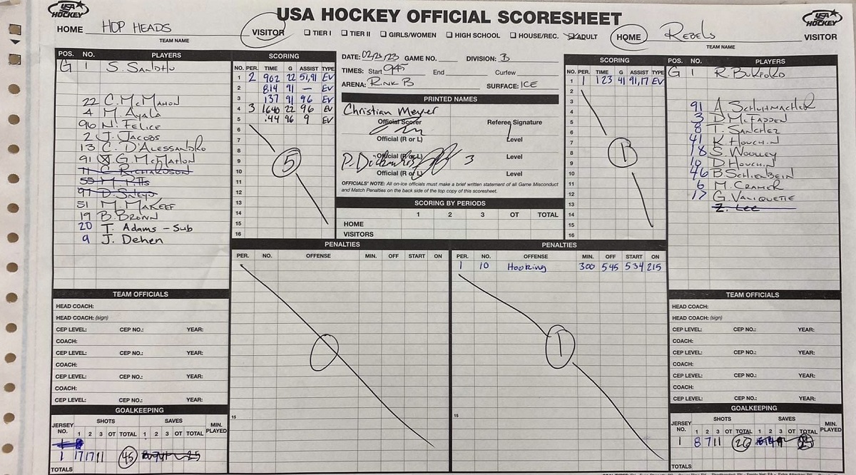 2023-02-20 09:45 PM Rebels Hop Heads Toyota Arena Robyn Sanders 1 - 5