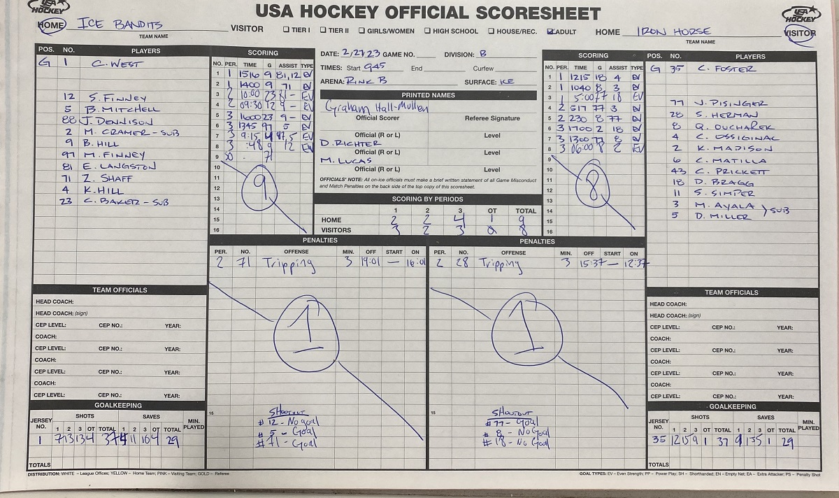 2023-02-27 09:45 PM Ice Bandits Iron Horse Toyota Arena Robyn Sanders 9 - 8 SO