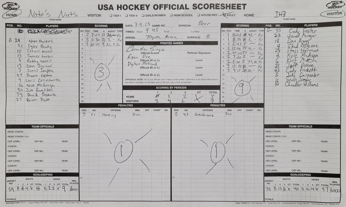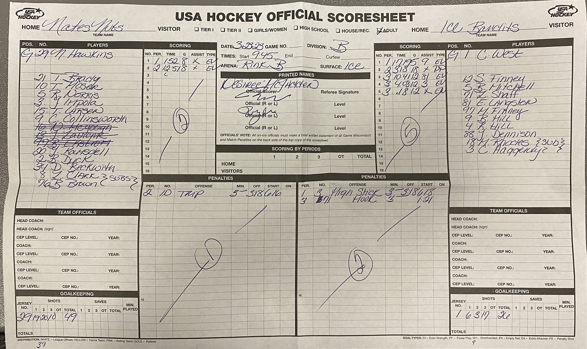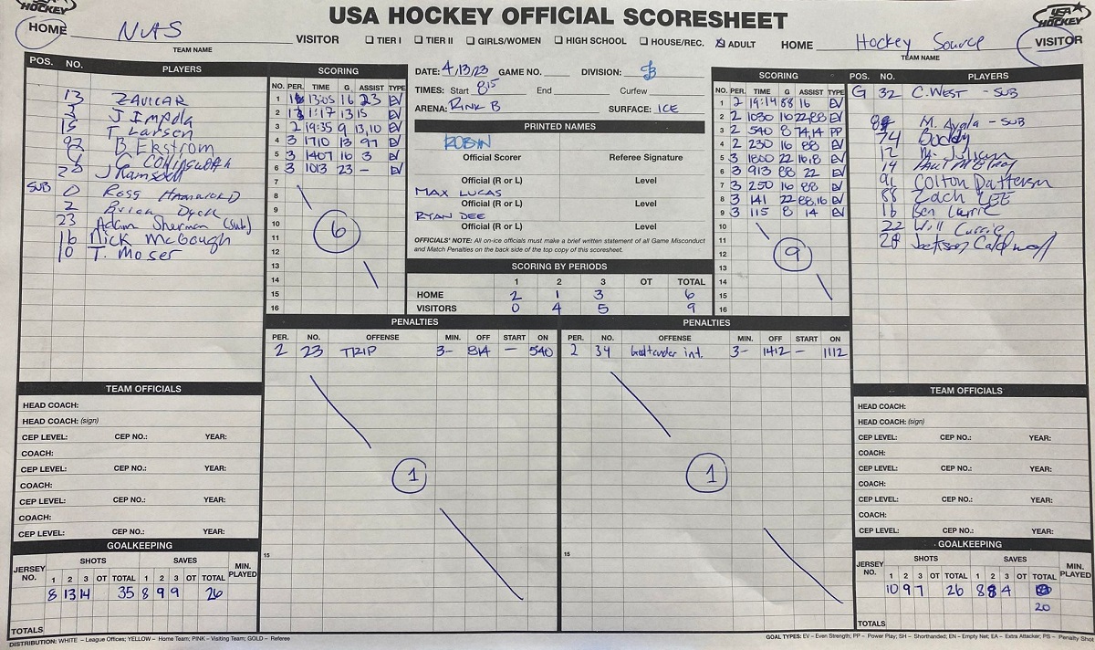 2023-04-13 08:15 PM Nate's Nuts Hockey Source HC Toyota Arena Sarah Coie 6 - 9