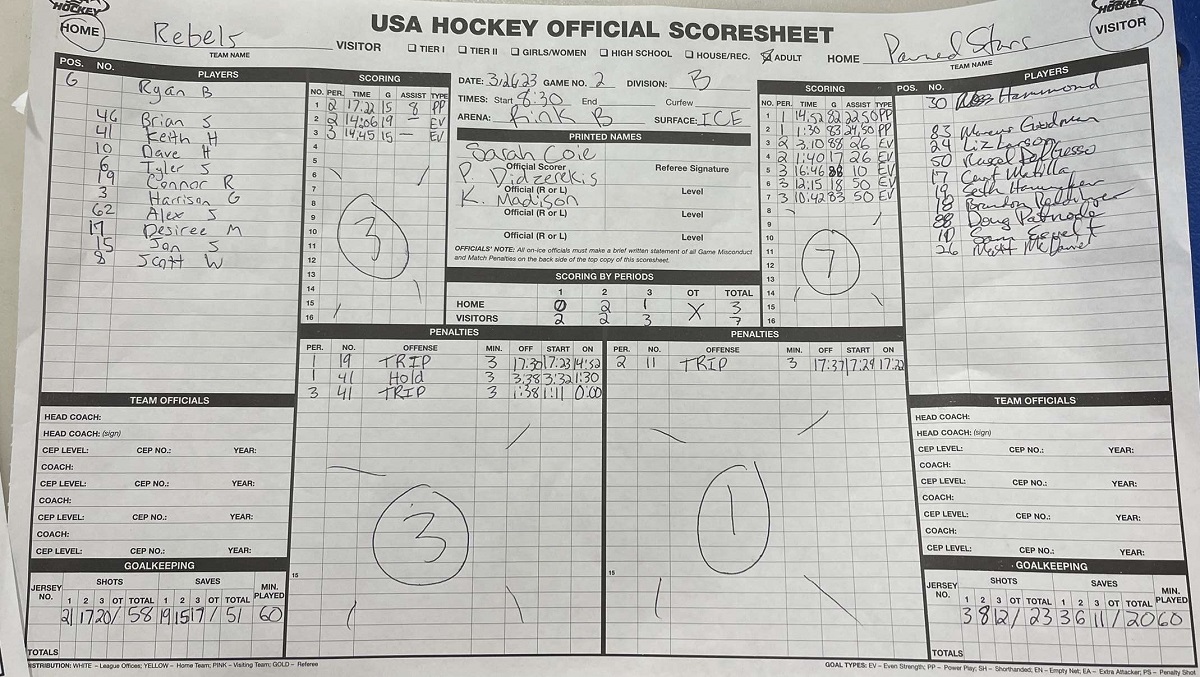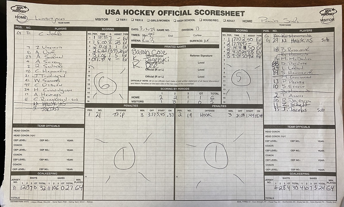 2023-03-02 09:45 PM Lumberjacks Pawned Stars Toyota Arena Sarah Coie 6 - 5 OT