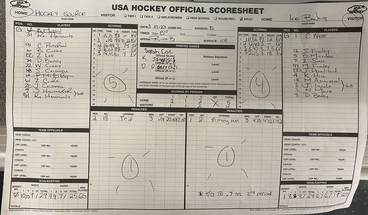 2023-03-30 09:45 PM Hockey Source HC Hop Heads Toyota Arena Cathie Caron 5 - 3