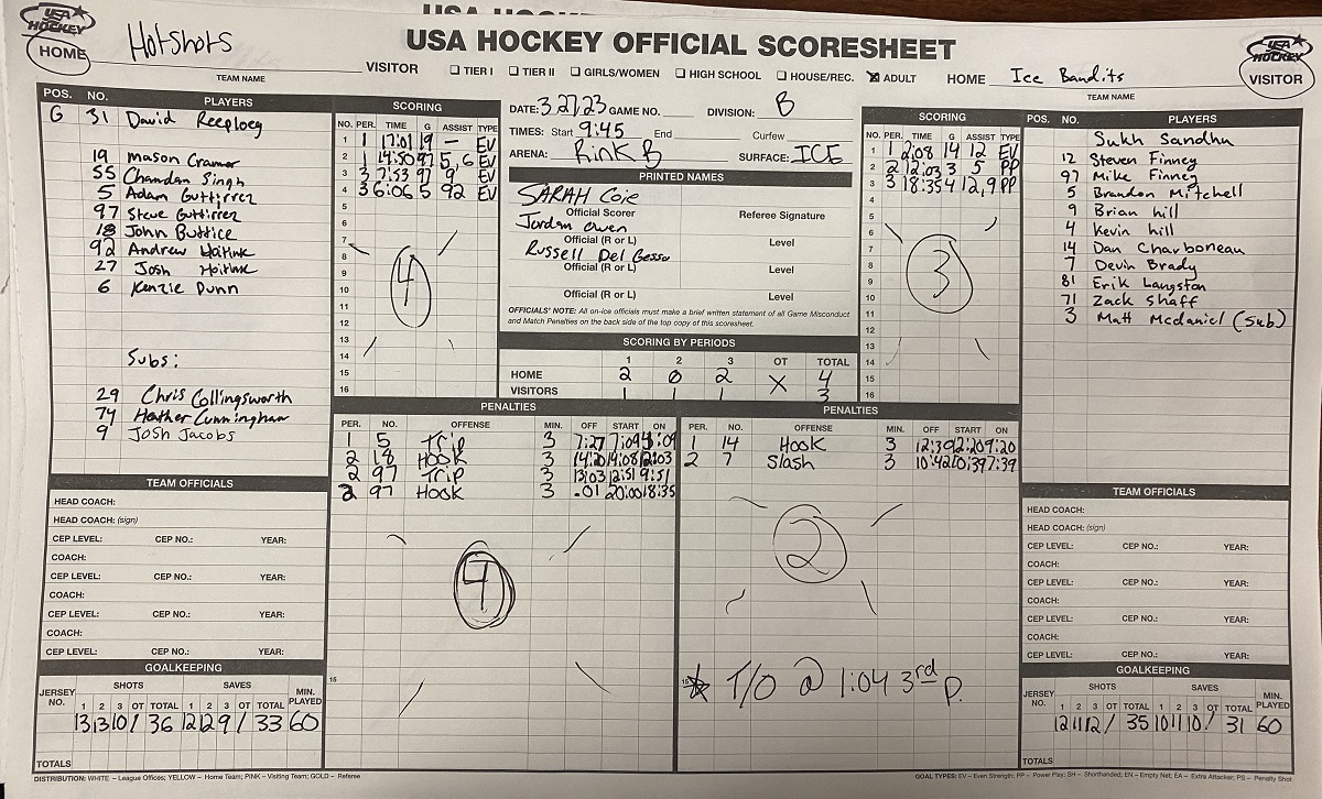 2023-03-27 09:45 PM Ice Bandits Hotshots Toyota Arena Sarah Coie 3 - 4