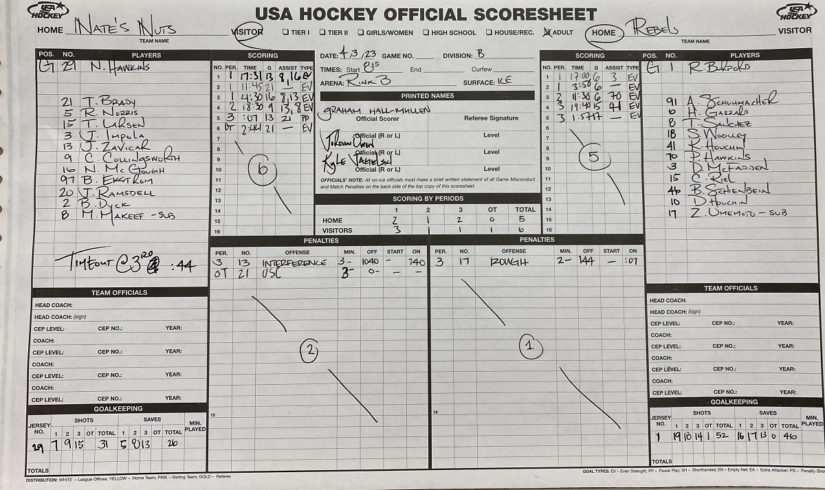 2023-04-03 08:15 PM Rebels Nate's Nuts Toyota Arena Graham Hall-Mullen 5 - 6 OT