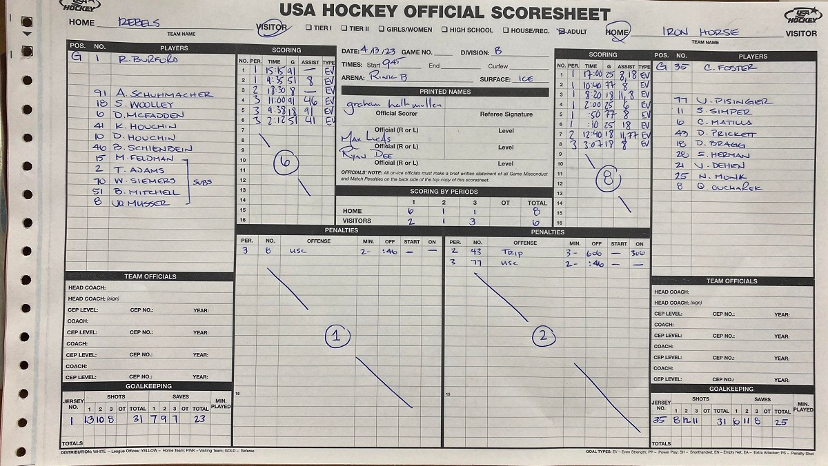 2023-04-13 09:45 PM Iron Horse Rebels Toyota Arena Sarah Coie 8 - 6