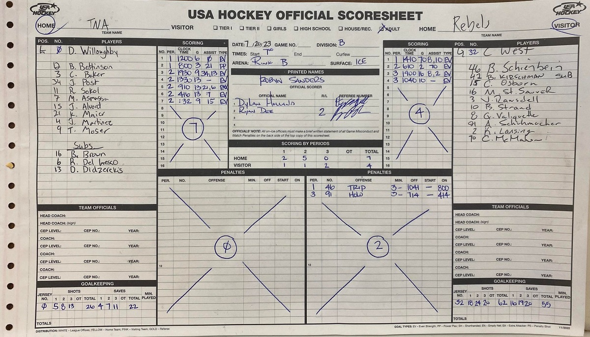2023-07-20 07:00 PM TNA Rebels Toyota Arena Christian Meyer 7 - 4