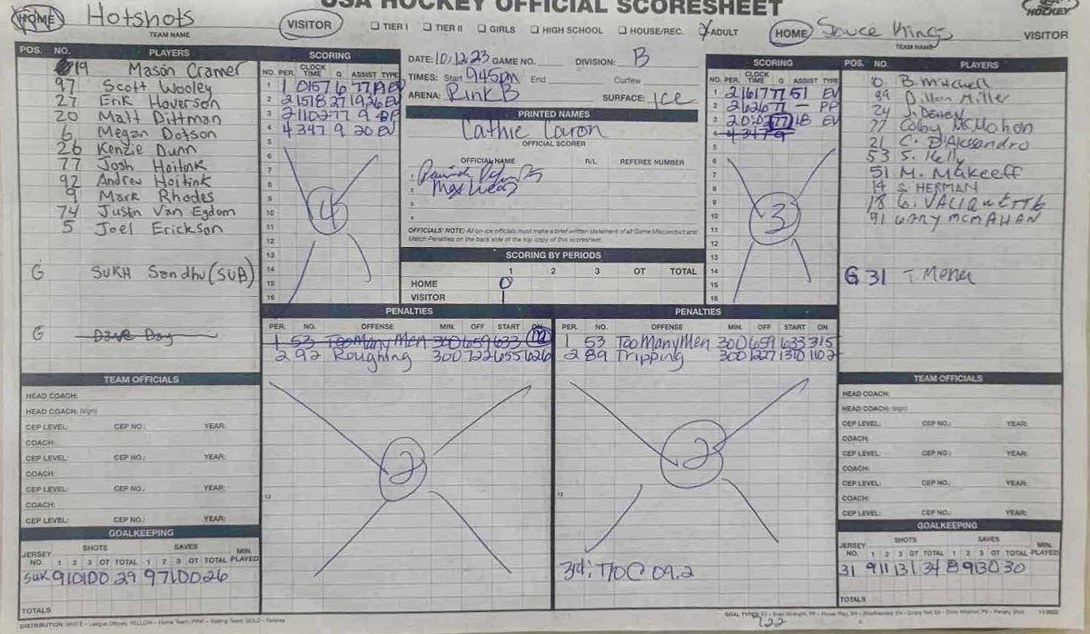 2023-10-12 09:45 PM Hot Shots Sauce Kings Toyota Arena CATHIE CARON 4 - 3 OT