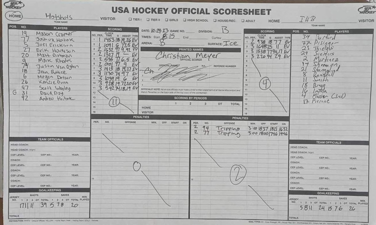 2023-10-26 08:15 PM Hop Heads Hot Shots Toyota Arena ROBYN SANDERS 7 - 5